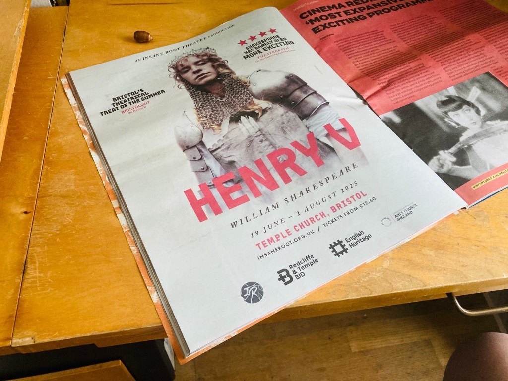 A review of Henry V as performed by Insane Root Theatre in Bristol, England, on 25 July 2025. Run ends on 2 August