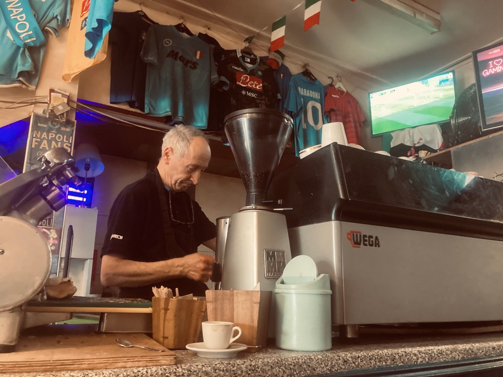 The place has an oldfashioned vibe and multiple TV screens showing Italian channels. The Italian customers who were in at the same time as ourselves were there for a reason.