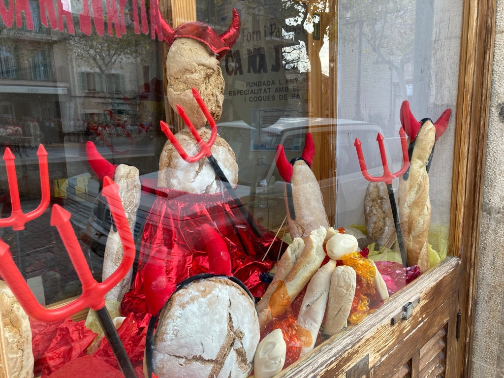 Nearly noon and bonfire logs stand ready in the sun on a neat mound of sand in the main square, as demons break for drinks at cafe tables. Diabolical loaves in plastic red horns fill the window of a bakery. Fun is coming to the town as sure as the echo of a drum.